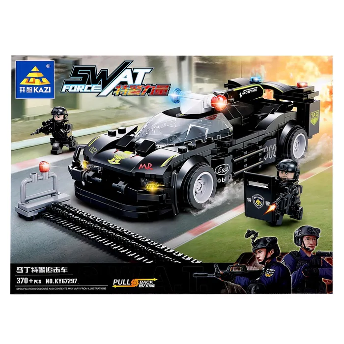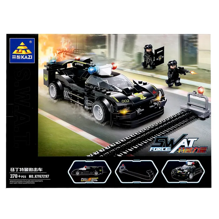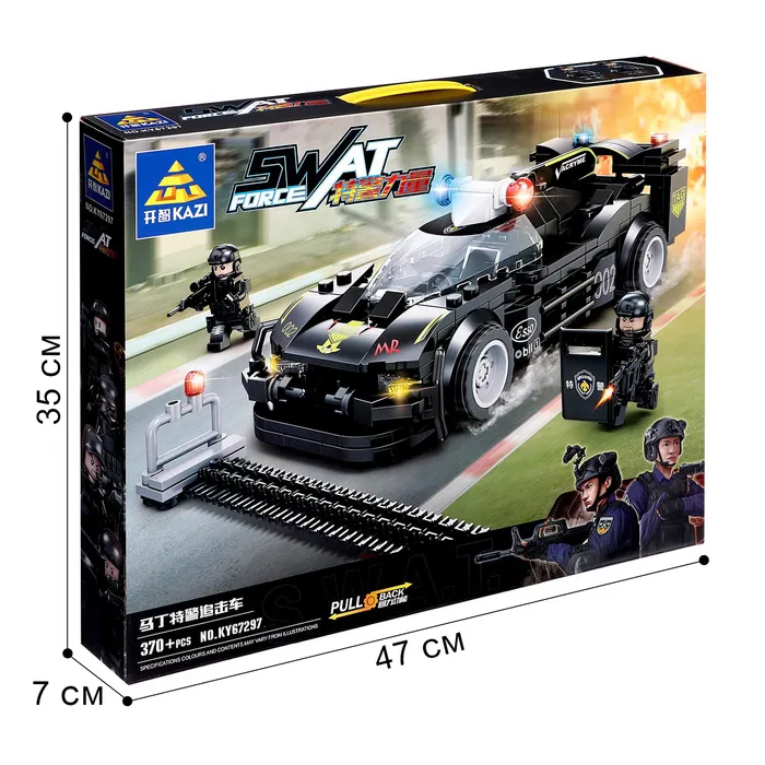 Собери свою элитную команду! Конструктор «Спецназ: Заграждение» (370 деталей) — это набор для создания модели высокоскоростного полицейского автомобиля с подвижными элементами и фигурками спецназа.