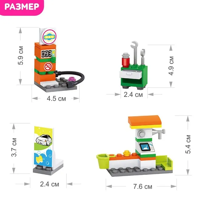 - 180 деталей для сборки заправочной станции.