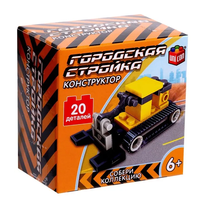 Соберите строительный бульдозер торговой марки UNICON и возведите новое здание! Ведь каждому городу требуется стремительное развитие. Организуйте команду строителей, соберите всю коллекцию конструктора строительной техники и возводите дома и другие сооружения.