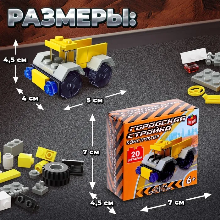 Соберите строительный самосвал торговой марки UNICON и возведите новое здание! Ведь каждому городу требуется стремительное развитие. Организуйте команду строителей, соберите всю коллекцию конструктора строительной техники и возводите дома и другие сооружения.