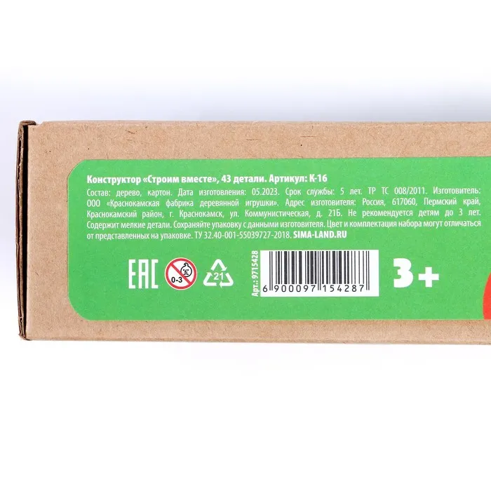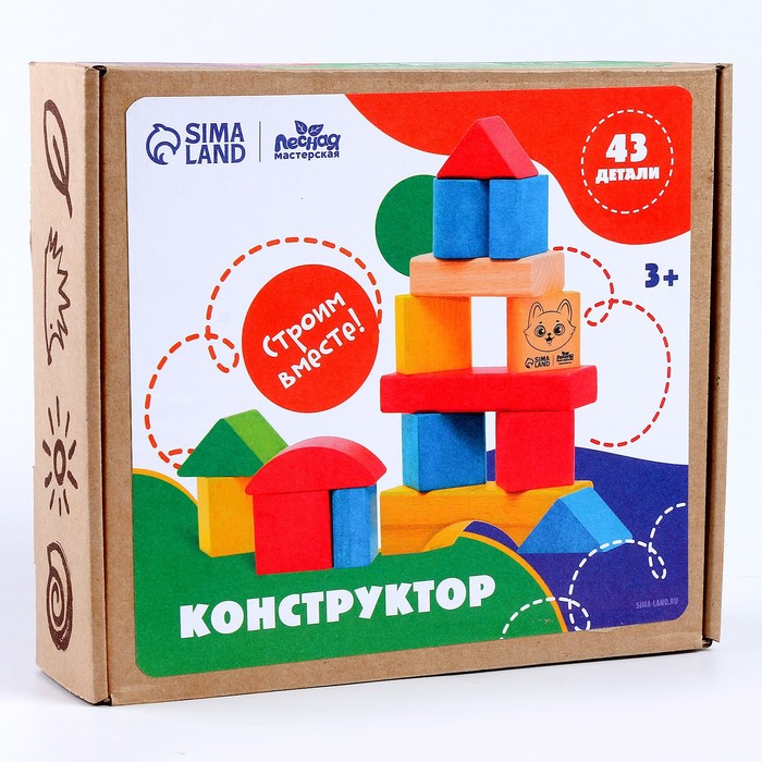 Деревянный конструктор «Строим вместе» — это универсальная игрушка для детей от 3 лет, которая помогает изучать формы, цвета и развивать логическое мышление. В комплект входят 43 детали, которые можно использовать для создания разнообразных конструкций.