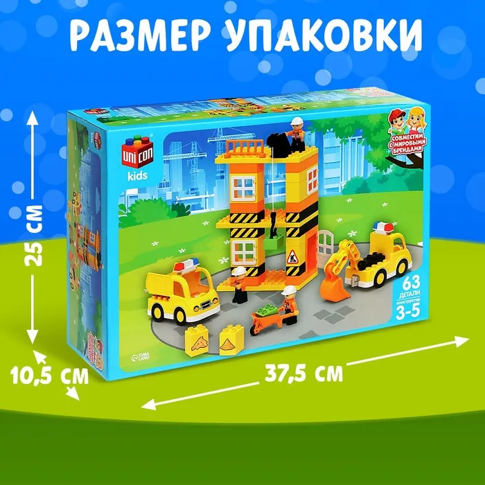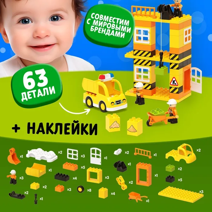 Конструктор «Стройплощадка большая», наклейки в наборе, 63 детали — Характеристики