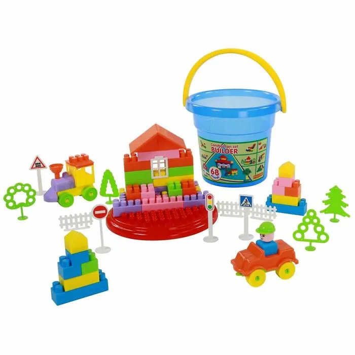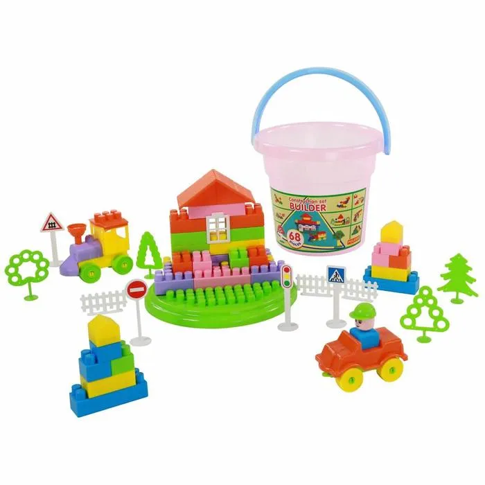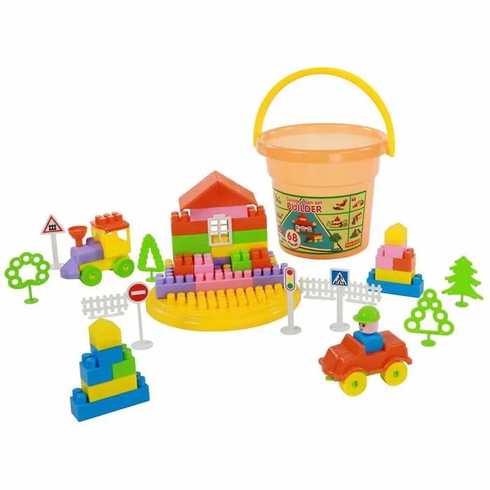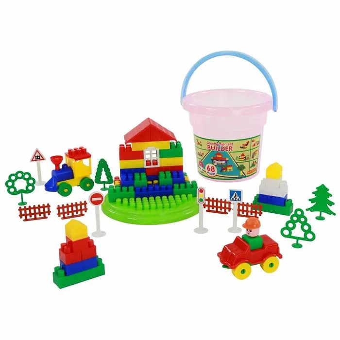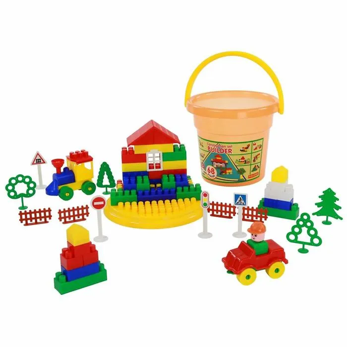 Конструктор «Строитель», 68 элементов, в ведре макси с крышкой — Характеристики