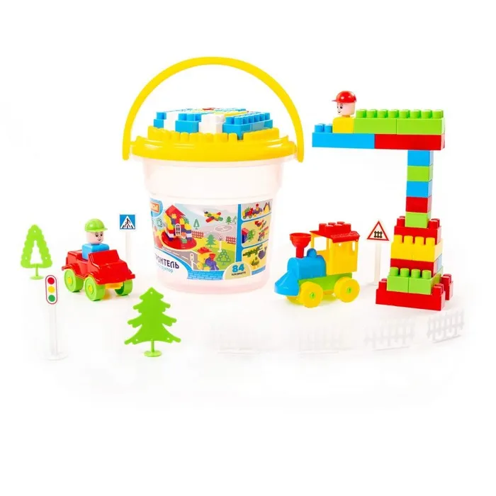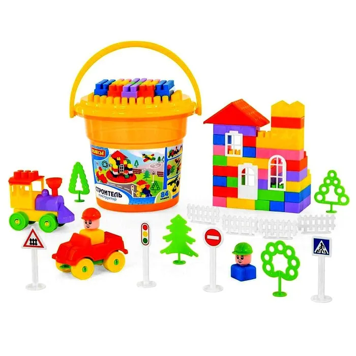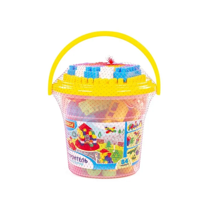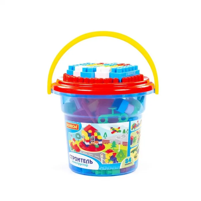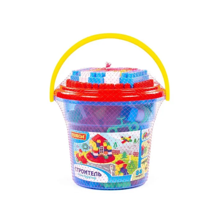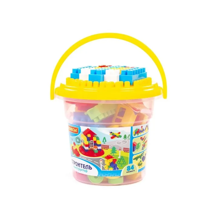 Конструктор «Строитель» 84 эл в ведре с крышкой — Характеристики