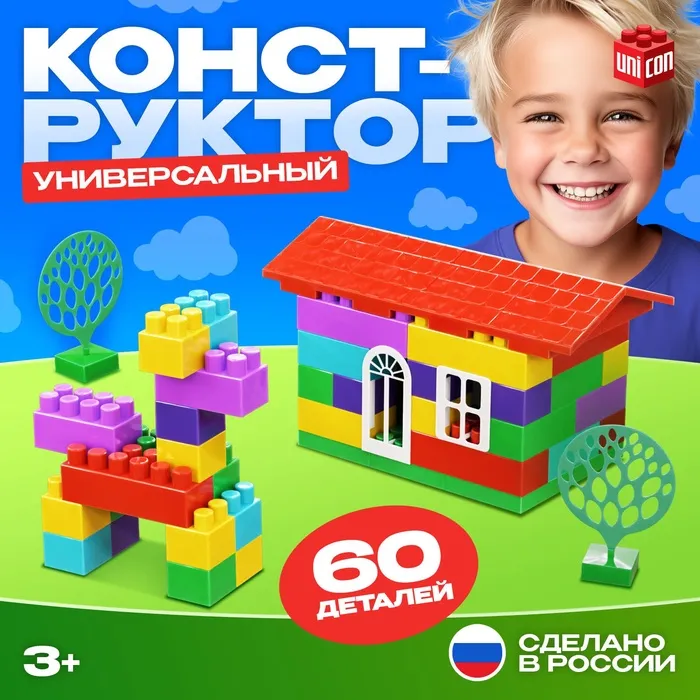 Конструктор «Строитель» в ведёрке, 52 элемента — Характеристики