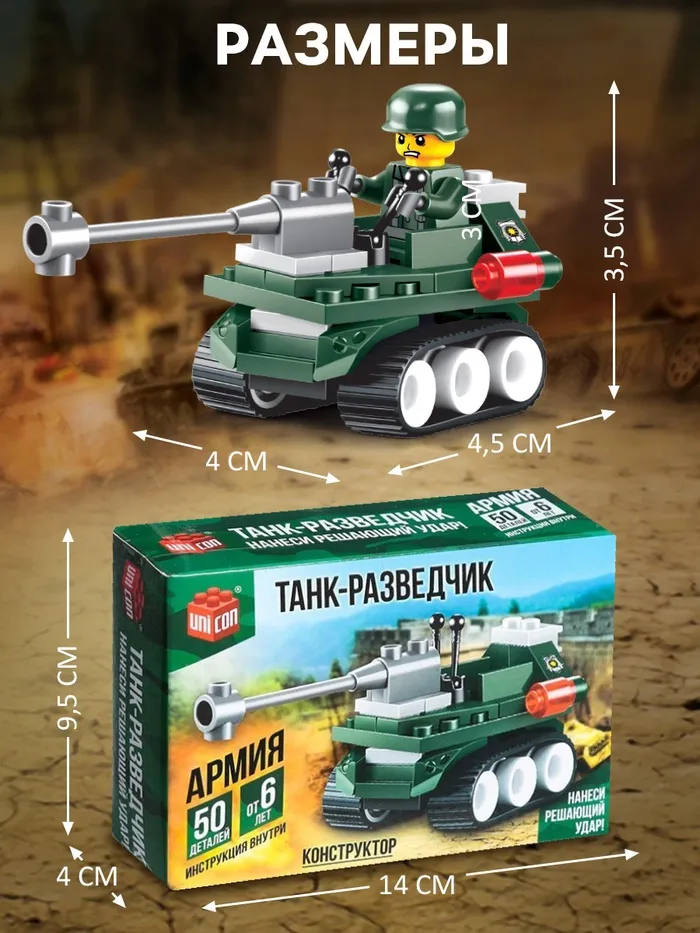 Представьте, что вы находитесь в горячей точке, противник уже близко, а у вас нет надлежащей техники, чтобы атаковать его. Соберите танк «Разведчик» торговой марки UNICON и нанесите решающий удар!