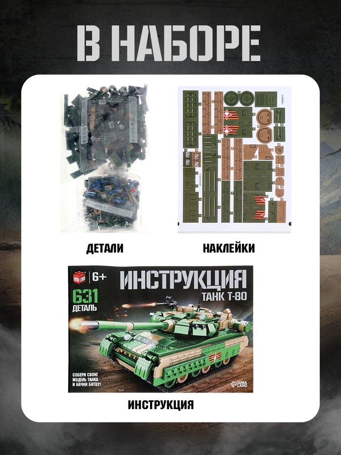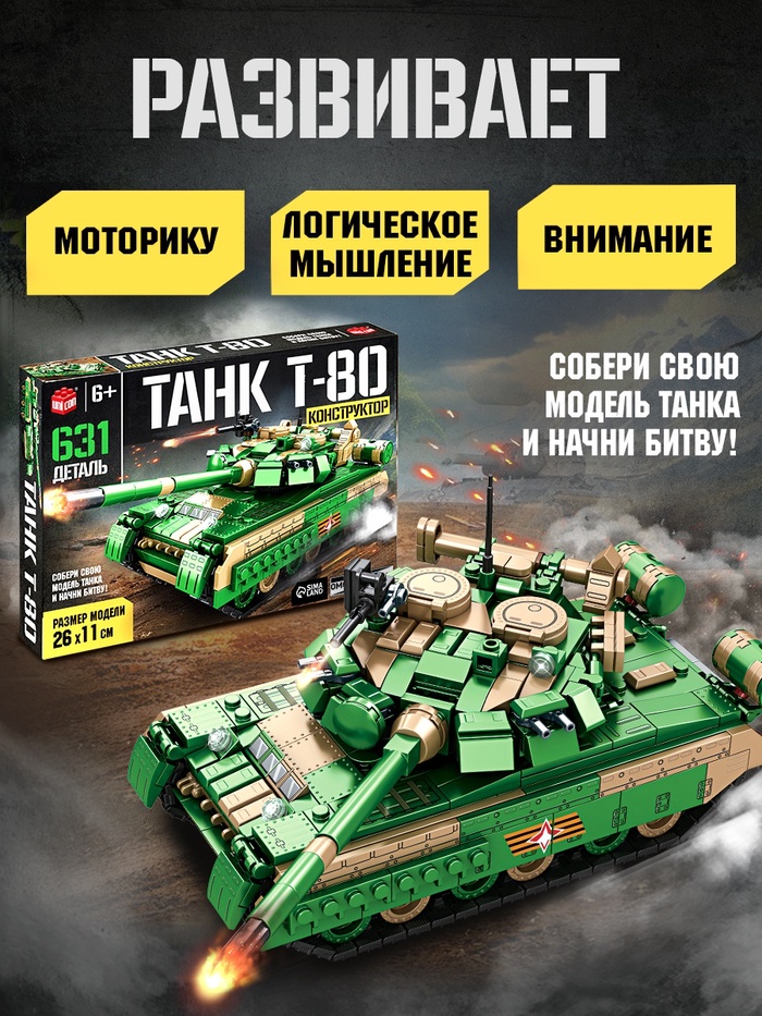 Воплоти легенду бронетанковых войск! Конструктор «Танк Т-80» — это 631 деталь для создания детализированной модели знаменитого основного боевого танка. Сборка требует терпения и открывает принципы устройства реальной машины.