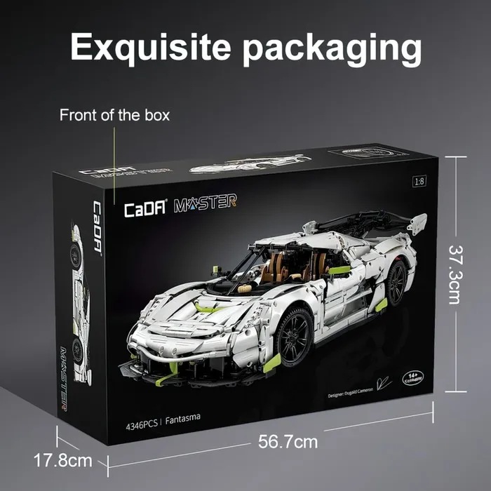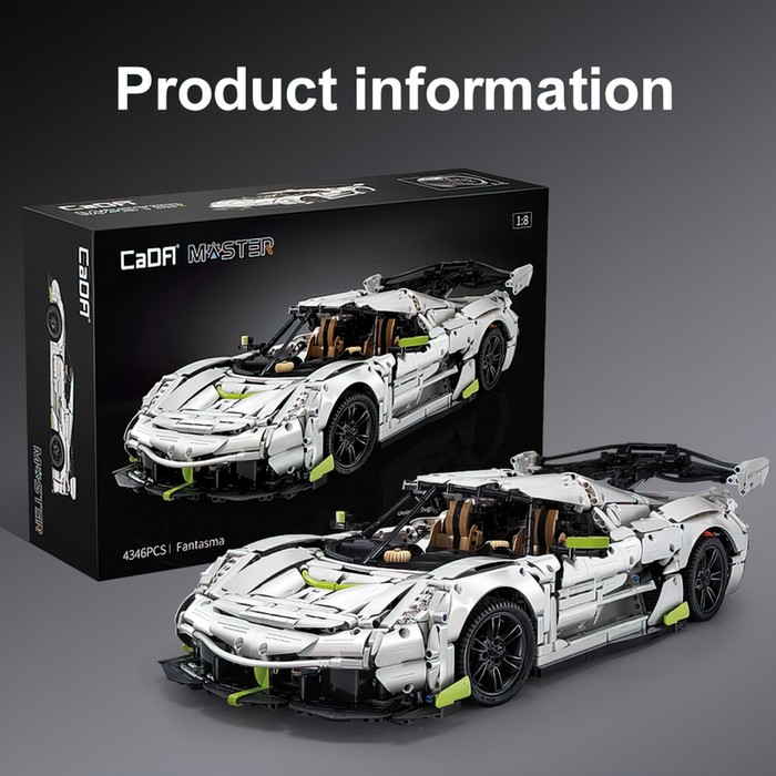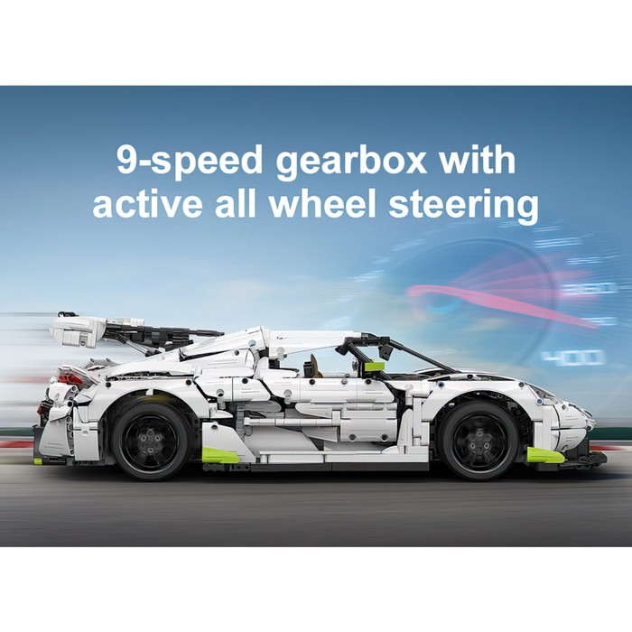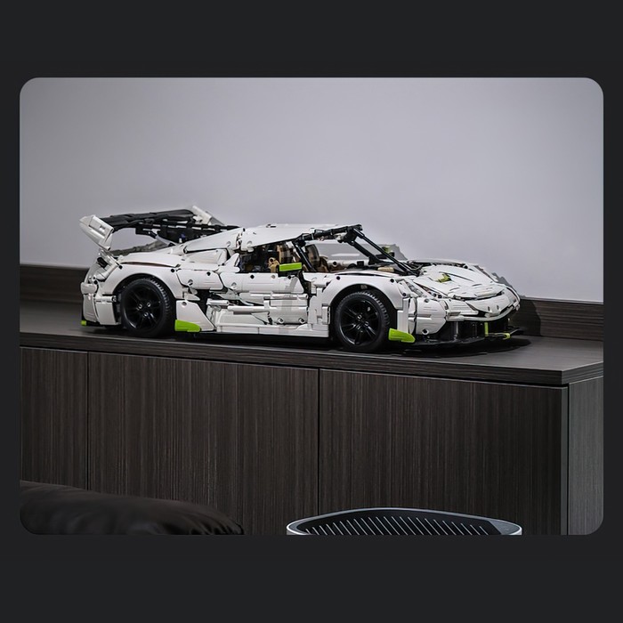 Конструктор Техно «Спорткар» — это масштабная модель суперкара Koenigsegg Jesko Fantasma, которая собирается из 4346 деталей. Модель выполнена в масштабе 1:8 и имеет длину 62 см.