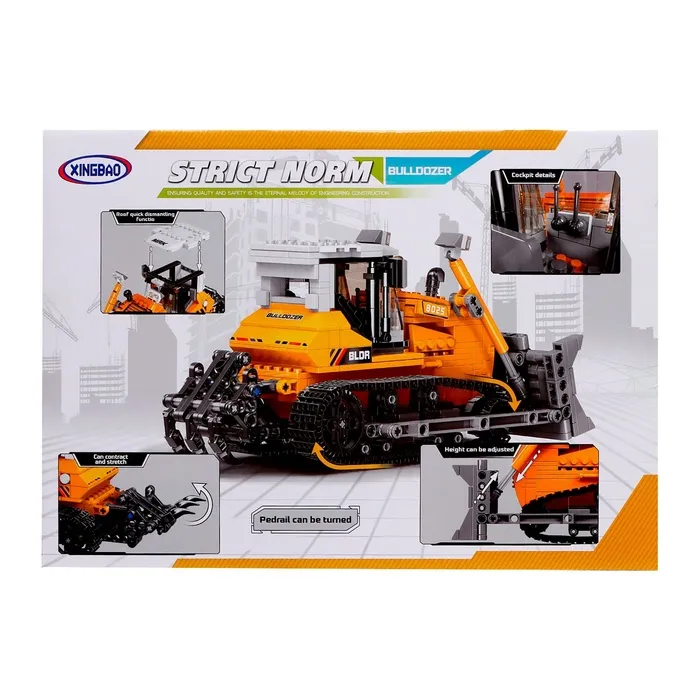 - Большой набор – 703 детали: Ребенок сможет собрать детализированный бульдозер с подвижными элементами, что развивает логическое мышление и мелкую моторику. Набор предлагает не только сборку по инструкции, но и возможность создавать собственные модели.