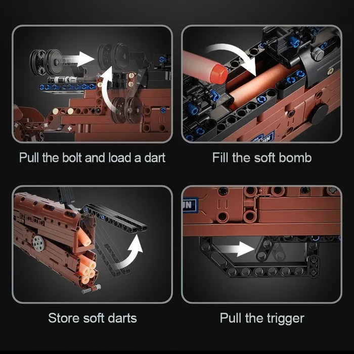 Сборка винтовки помогает освоить основы инженерии, развивает пространственное мышление и координацию. Готовая модель дополнит игровую коллекцию и сделает ролевые игры ещё интереснее. Отличный подарок для подростков, увлечённых техникой и моделированием!
