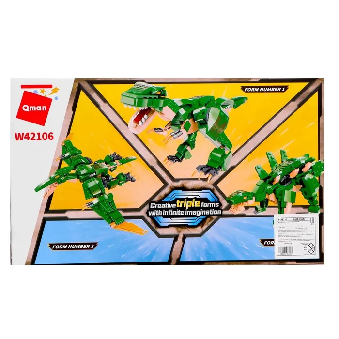 - Три модели в одном наборе: Можно собрать разные виды динозавров, варьируя их внешний вид и строение.
