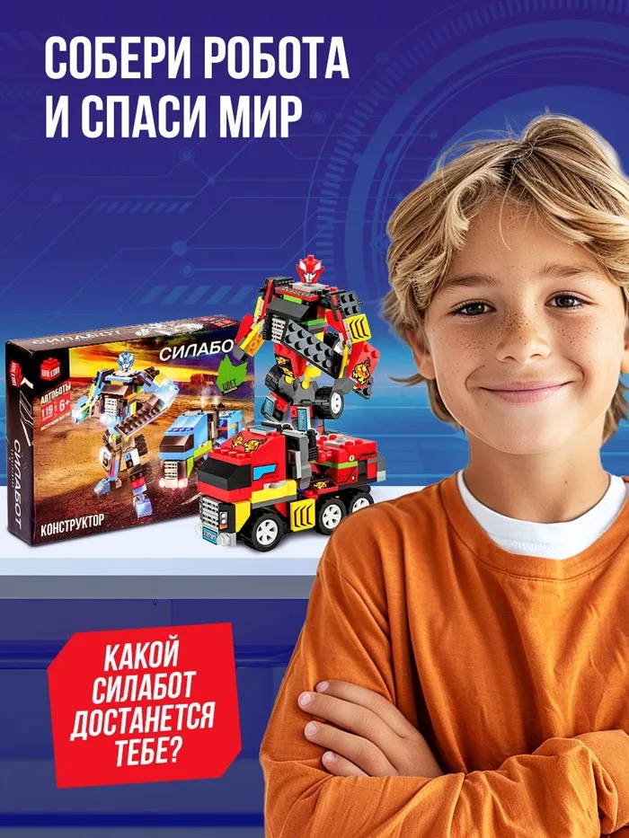 Набор содержит 119 деталей и позволяет сконструировать непобедимого супергероя или неуловимый джип.