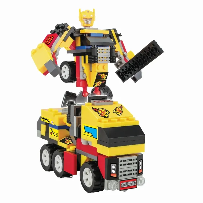 Набор содержит 119 деталей и позволяет сконструировать непобедимого супергероя или неуловимый джип.