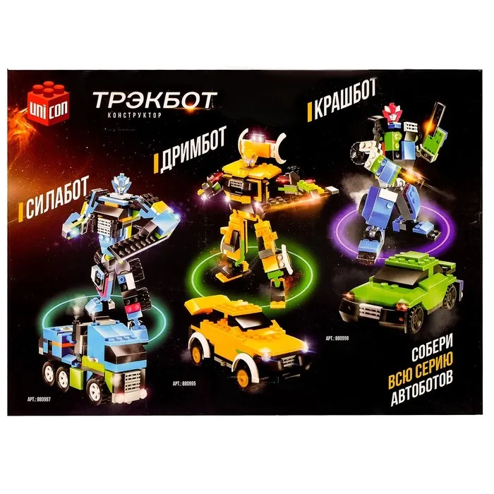 Соберите неуловимый спорткар и отправляйтесь покорять скоростные трассы. Завоюйте звание чемпиона, а когда победа будет за вами, превратите болид в неуязвимого робота. С таким героем мальчишка придумает множество увлекательных сюжетов.