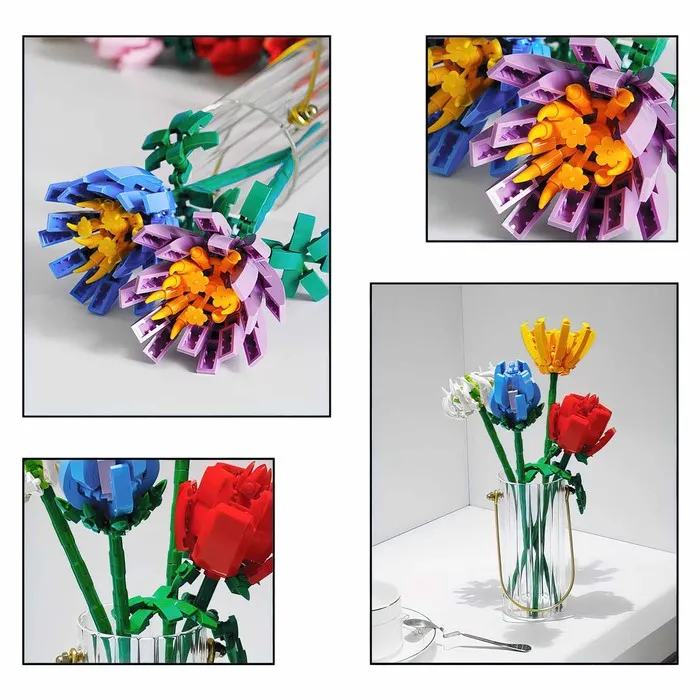 - 88 деталей: Набор включает все необходимые элементы для сборки цветка. Каждая деталь легко соединяется, обеспечивая удобство и удовольствие от процесса сборки.