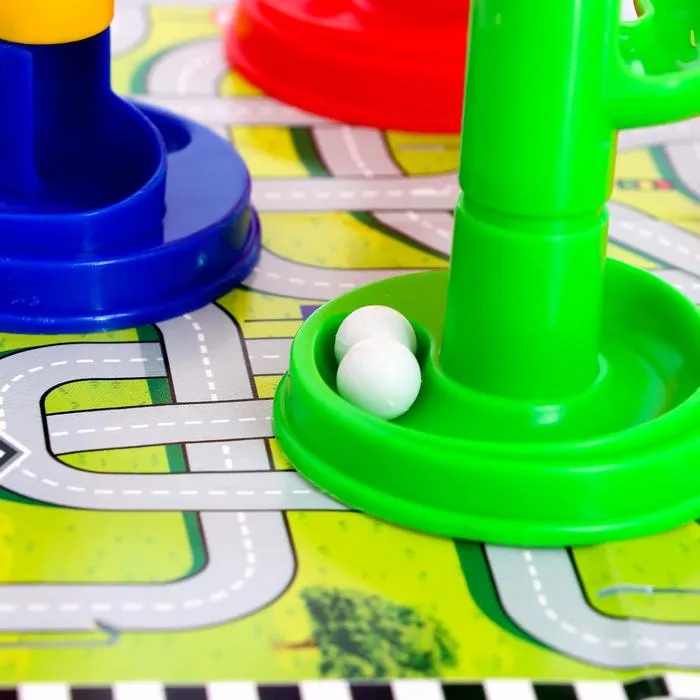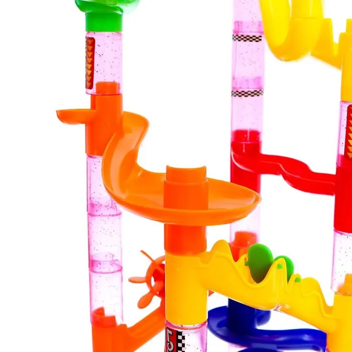 Набор состоит из прозрачных трубочек, разноцветных мостиков, извилистых дорожек и мельниц. Ребята без труда соорудят трассу любой длины и сложности, будут запускать шарики и следить за их полётом. Победит тот, чей мячик первым достигнет финиша.