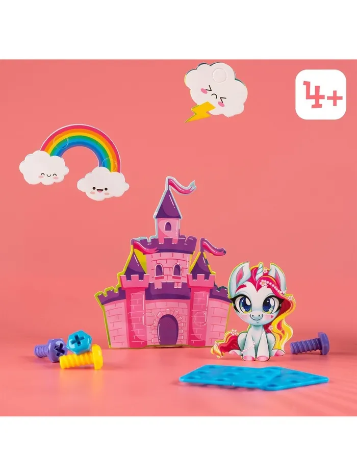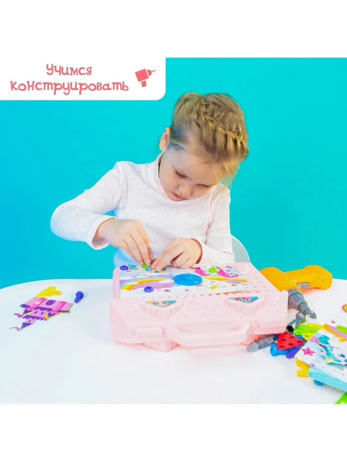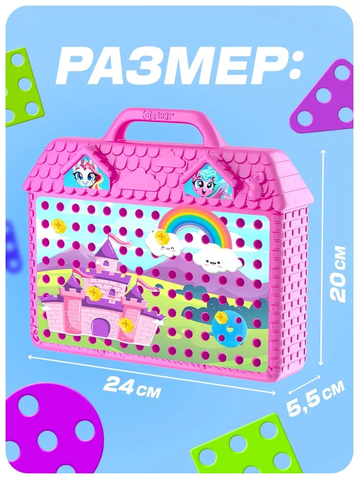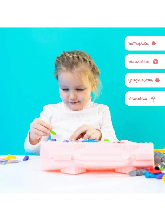 Увлекательный конструктор-мозаика — то, что надо маленьким любителям всего необычного! Задача малыша: вкручивать болтики и собирать картинки с помощью игровых полей и красочных фигурок.