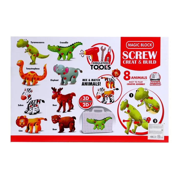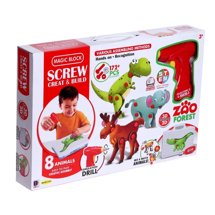 Конструктор в чемодане «Животные», с электрическим шуруповертом, 8 животных, 172 детали