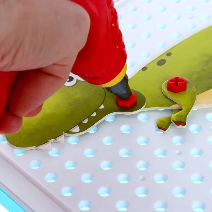 Задача малыша: вкручивать болтики и собирать картинки с помощью игровых полей и красочных фигурок.