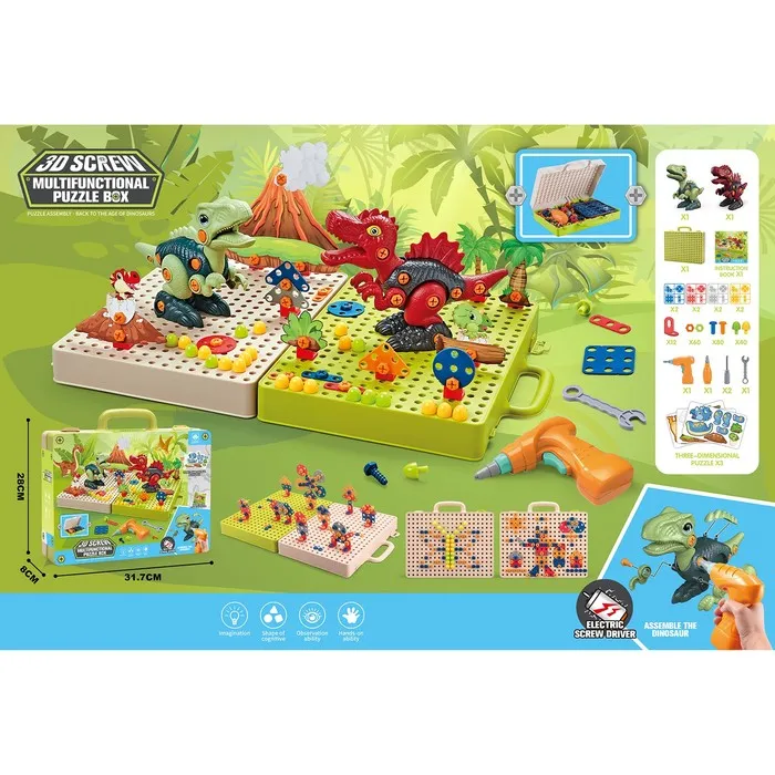 Играй и учись: этот набор сочетает в себе развитие мелкой моторики, интерес к технике и знакомство с историей Земли. Электрический шуруповёрт добавляет ощущение реальности, а яркие детали создают живые образы. Построй своего динозавра, исследуй доисторический мир и отправься в путешествие сквозь время!
