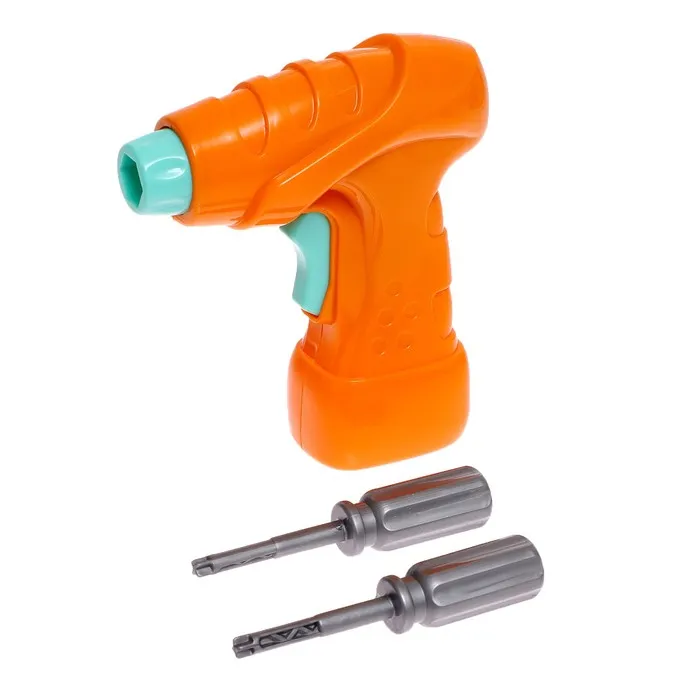 - Настоящий инструмент: В набор входит детский шуруповёрт с безопасными характеристиками, работающий от батареек.