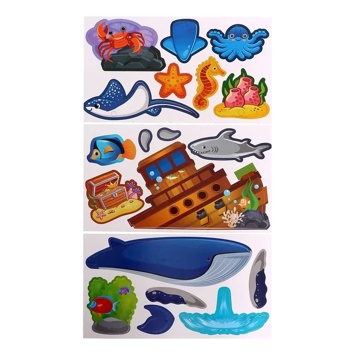 - Тематический дизайн: Все элементы выполнены в морской стилистике — можно собирать обитателей океана.