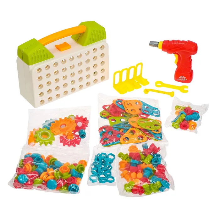 Занятия с винтовым конструктором помогут ребёнку развить воображение, эмоциональное и визуальное восприятие, мелкую моторику, координацию и умение конструировать. С помощью шуруповёрта и винтиков из набора малыш самостоятельно соберёт игрушку.