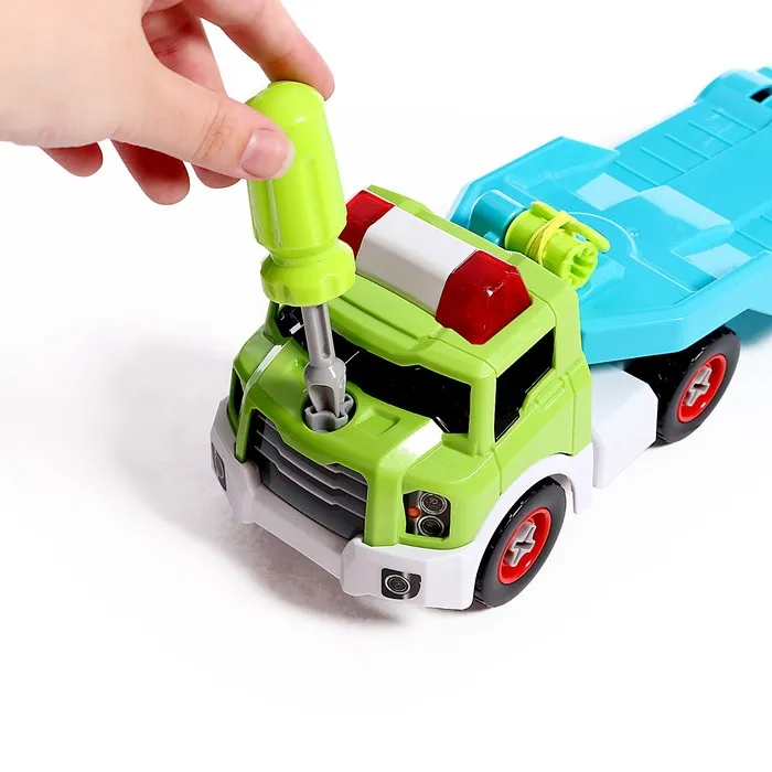 Ребёнок с помощью отверток, имеющихся в наборе, сможет сам собрать игрушку.