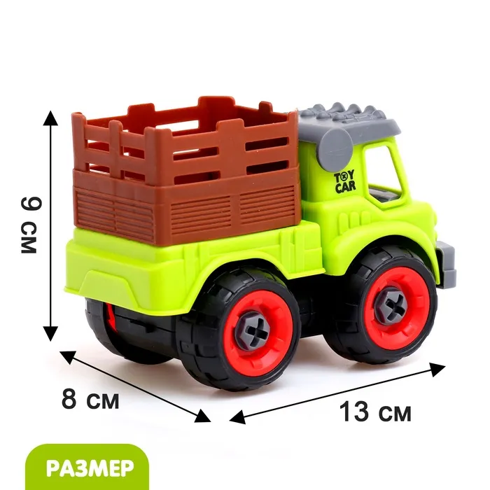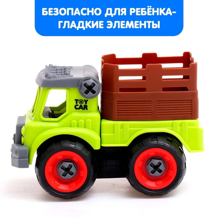 Винтовой конструктор «Фермерский самосвал» — это увлекательная и яркая игрушка, которая обязательно порадует ребёнка! Ведь малыш самостоятельно соберёт её с помощью инструментов, имеющихся в наборе. Ребёнок получит необходимые бытовые знания, научится закручивать шурупы, болты, шестерёнки, пуговки, а также придумывать новые конструкции.