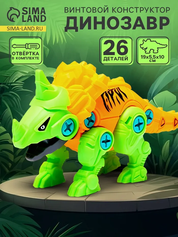 Конструктор винтовой «Мир динозавров», набор 2 штуки, 2 отвёртки 4 карточки, 50 деталей — Характеристики