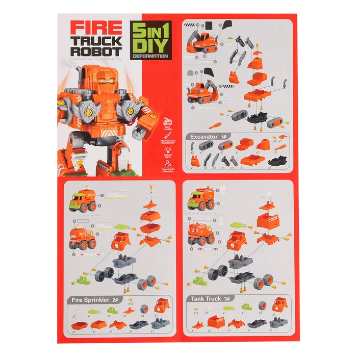 Конструктор винтовой «Робот пожарный», 5 в 1 — Характеристики