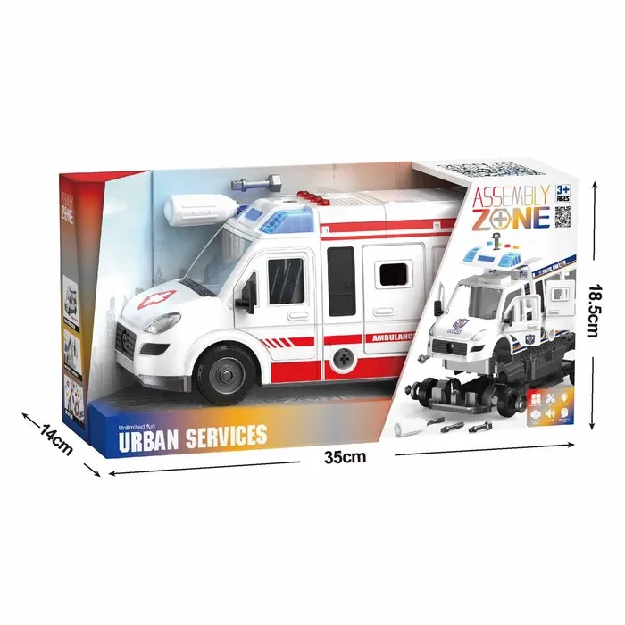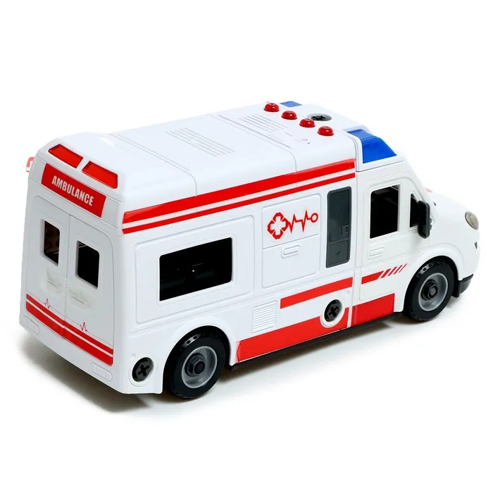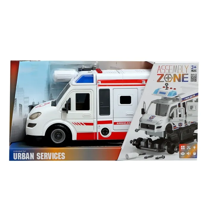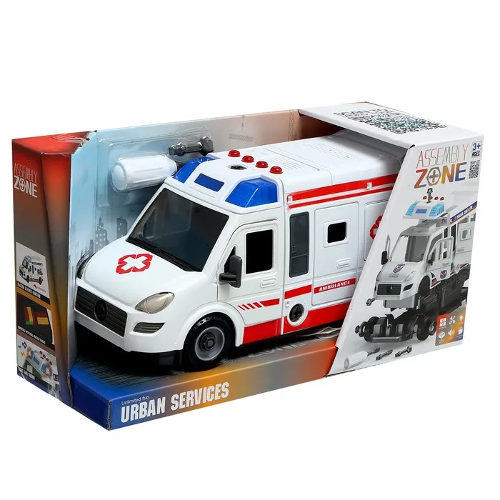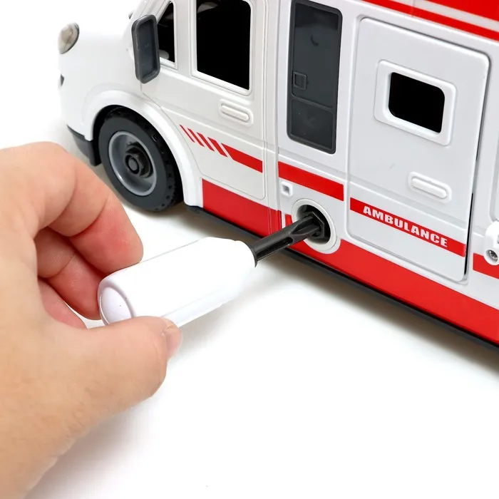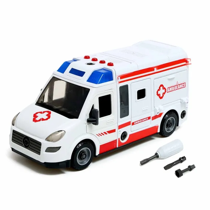 Машина «Скорая помощь» во главе с малышом уже мчится спасать человеческие жизни! Игрушка вызовет яркие эмоции у ребёнка и заставит его задуматься о важности и героизме работников медицины. Винтовой конструктор — это увлекательная яркая игрушка, которая обязательно порадует ребёнка! Ведь малыш самостоятельно сможет разобрать и собрать её с помощью инструментов, имеющихся в наборе.