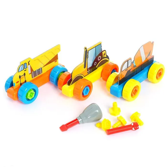 Конструктор винтовой «Строительный транспорт», набор 3 штуки, 34 детали