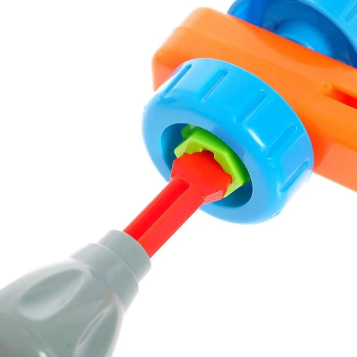 Ребёнок с помощью отверток, имеющихся в наборе, сможет сам собрать игрушку.
