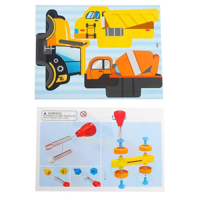 Конструктор винтовой «Строительный транспорт», набор 3 штуки, 34 детали — Характеристики