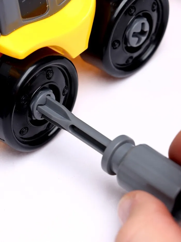 Ребёнок с помощью отверток, имеющихся в наборе, сможет сам собрать игрушку.