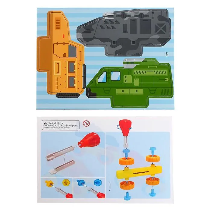 Ребёнок с помощью отверток, имеющихся в наборе, сможет сам собрать игрушку.