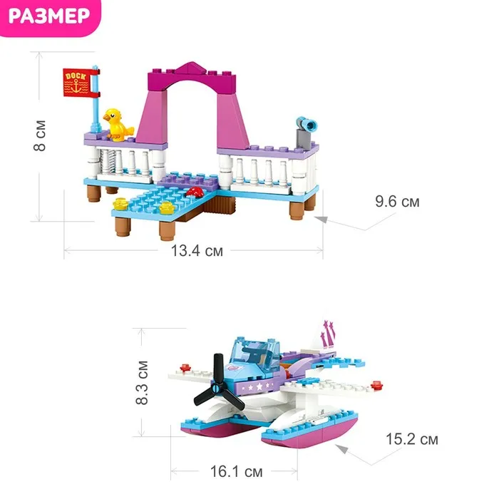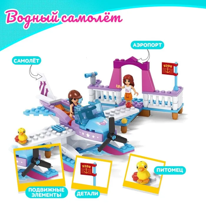 Нежные розово-сиреневые оттенки конструктора с первых секунд привлекут внимание девочек — они с удовольствием соберут гидроплан и отправятся в самое незабываемое путешествие.