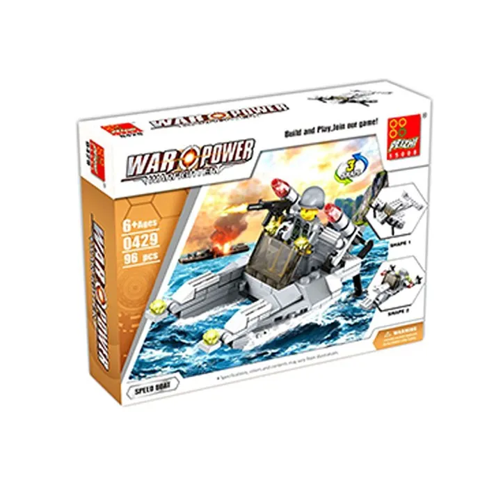 Игровой набор содержит 96 деталей и позволяет сконструировать три варианта плавучей техники.