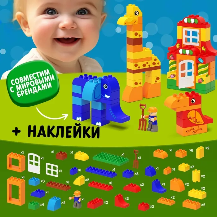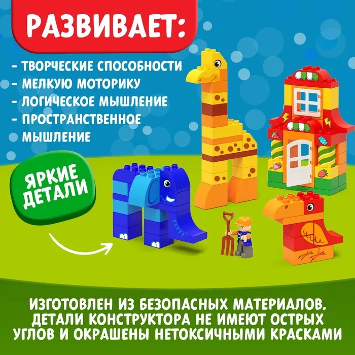 Детский блочный конструктор — это волшебный мир строительства и возможность для развития малыша! Этот набор из крупных пластиковых деталей поможет потренировать мелкую моторику, воображение и логическое мышление ребёнка.