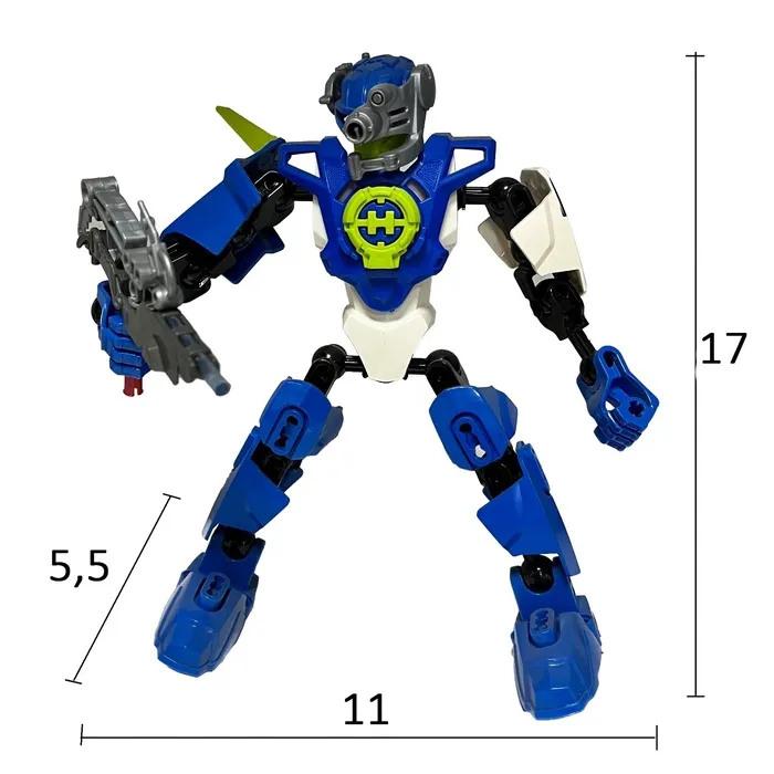 - Футуристическое вооружение: Фигурка оснащена мощной энергетической пушкой и защитной бронёй.