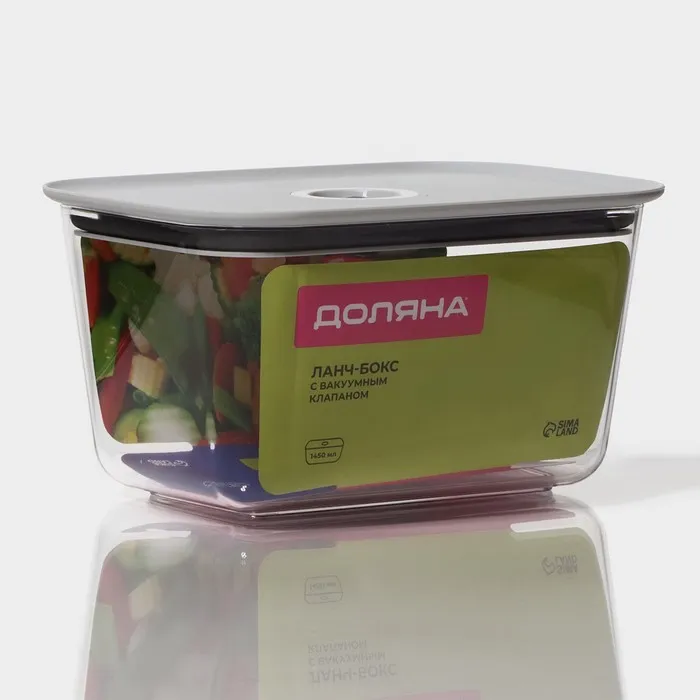 Контейнер для еды с вакуумным клапаном Доляна, пластик, 1.45 л, 19.5×14×10.5 см, прозрачный — Характеристики