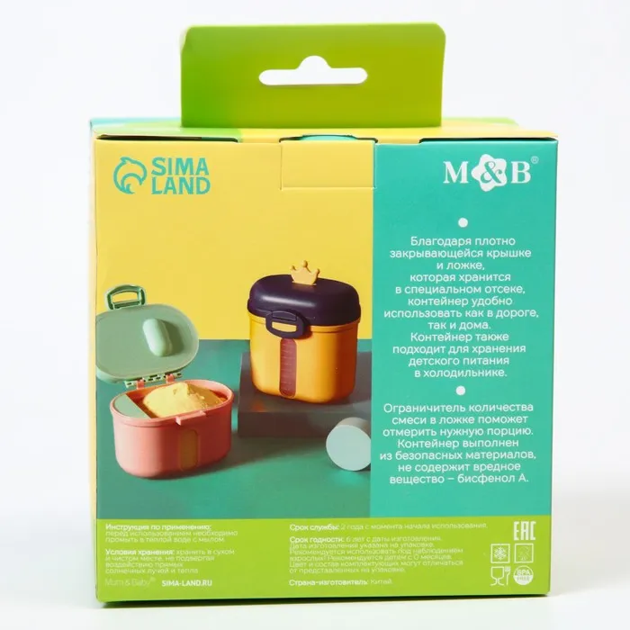 Контейнер для хранения детского питания M&B «Корона», 360 гр., зеленый — Характеристики
