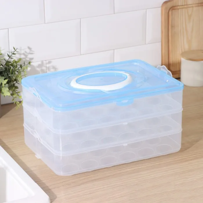 Как сэкономить место в холодильнике и избавиться от лишнего шума? Приобрести наш контейнер для хранения яиц в холодильнике. Органайзер для холодильника имеет 3 уровеня, общей ёмкостью – 72 яица.