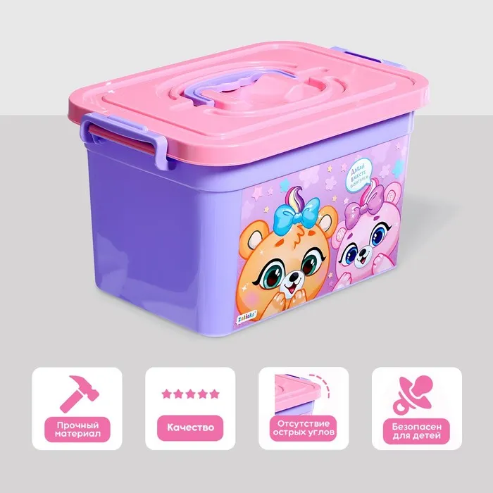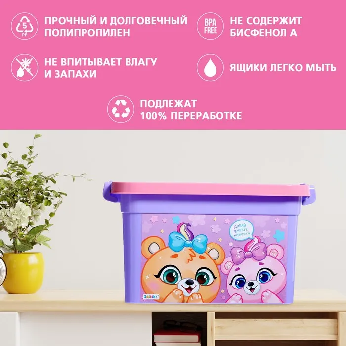 Ящик для хранения игрушек «Вместе поиграем» — универсальная мебель для детей. Яркий дизайн порадует малышку и отлично впишется в интерьер. Такое приобретение поможет организовать быт ребёнка, научит аккуратности и бережному отношению к личным вещам.