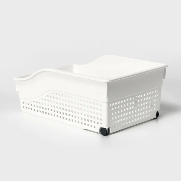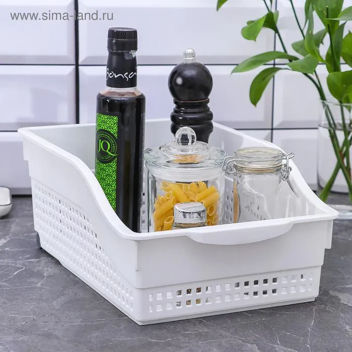 Вместительный контейнер на колесах обеспечит удобное хранение продуктов в холодильнике, либо различных вещей в любом шкафе, полке, на столе. Предотвратит падение бутылочных изделий, обеспечит сохранность хрупких предметов.