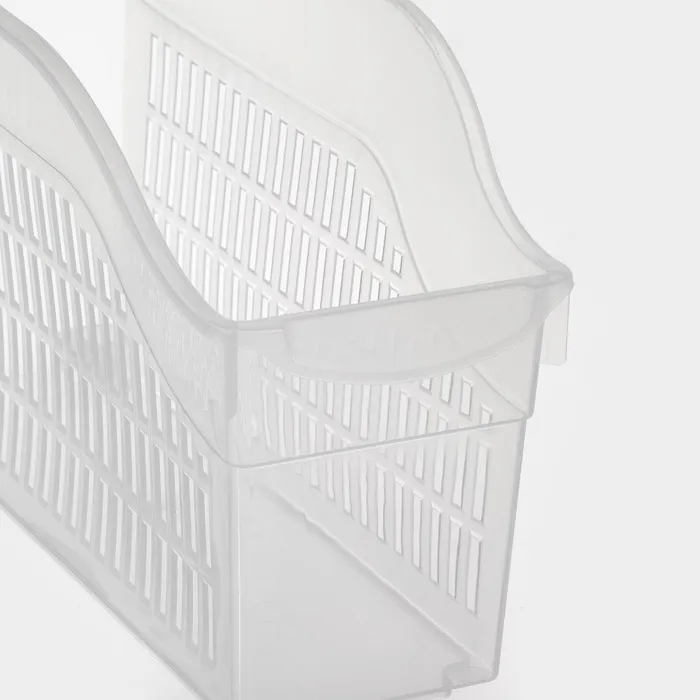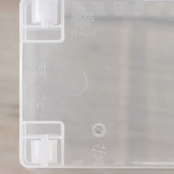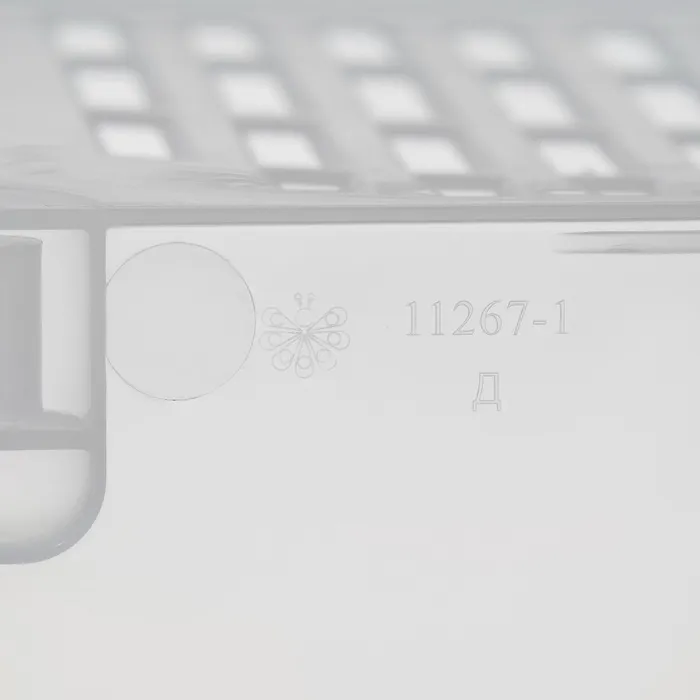 - Изготовлен из прочного пластика, который устойчив к нагрузкам и сохраняет прозрачность.