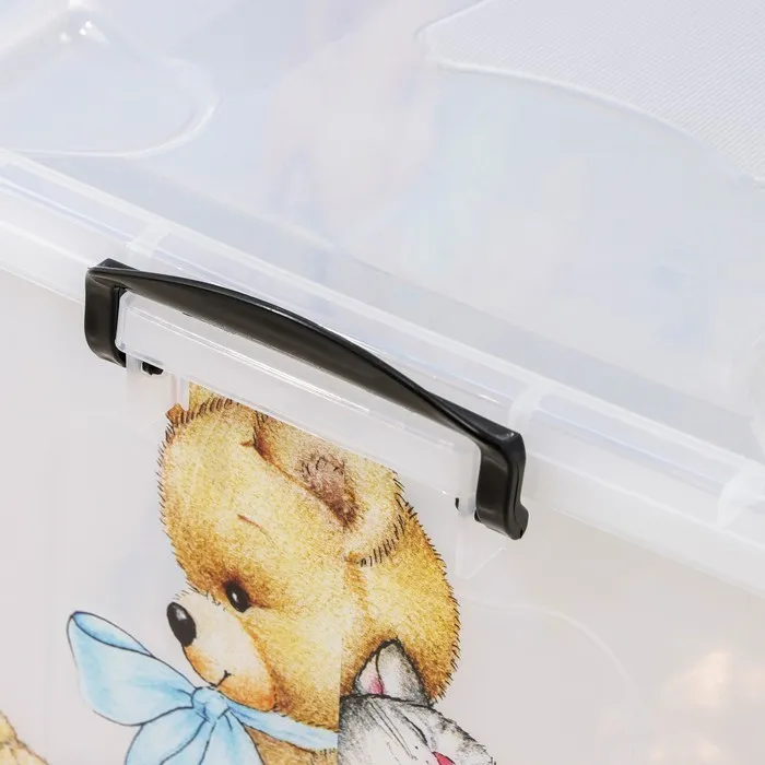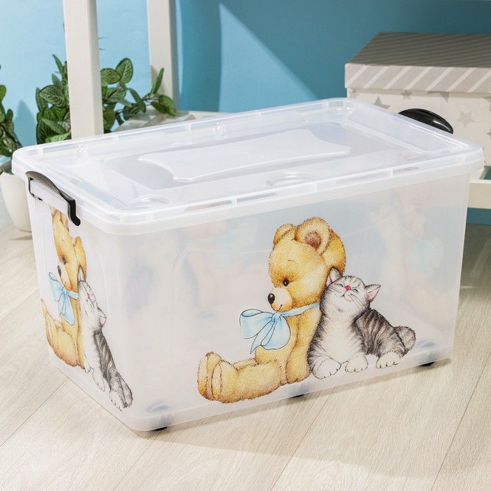 Контейнер для хранения на колёсиках «Мишка и котёнок», 50 л, 60×38×31 см, прозрачный — Характеристики