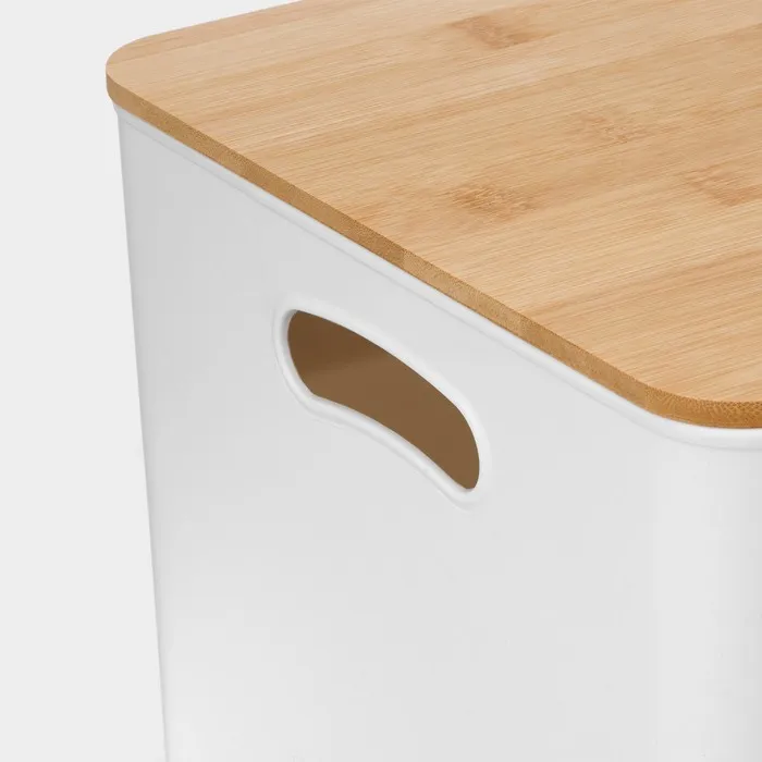 Сделанный из качественного белого пластика PP и с крышкой из бамбука, этот контейнер не только функционален, но и эстетически привлекателен. Его чистый и минималистичный дизайн гармонично впишется в любой интерьер, добавляя нотку естественности.