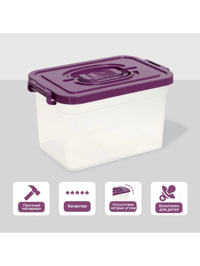 Контейнер для хранения с крышкой, объем 6,5 л, цвет фиолетовый — Характеристики